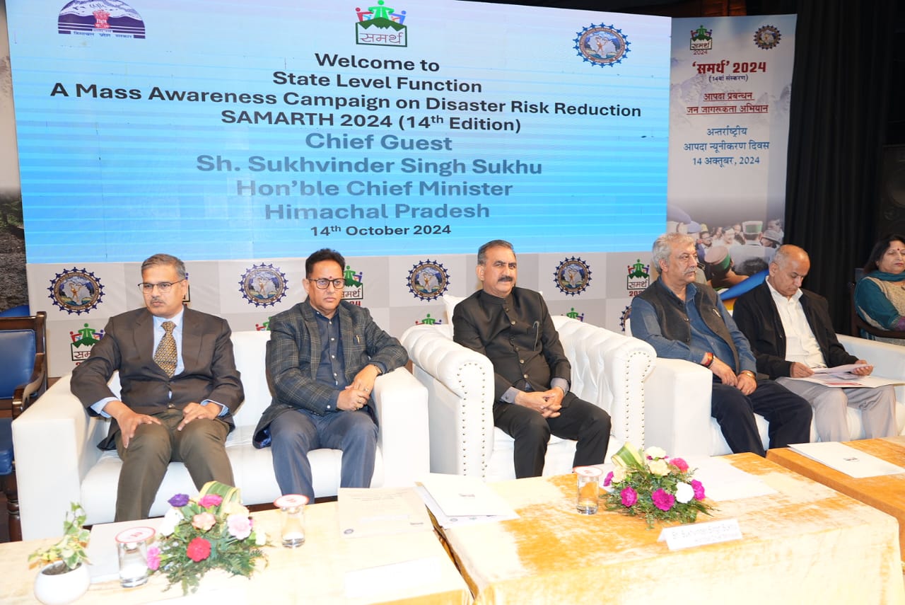 Chief Minister Thakur Sukhvinder Singh Sukhu said here today that climate change has led to an increase in the frequency of disasters, making it crucial to adapt to living with these challenges. He highlighted that awareness is the key to effectively facing disasters and minimizing the loss of life and property. He stated this while presiding over the International Disaster Reduction Day event, ‘Samarth-2024’.