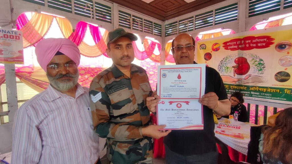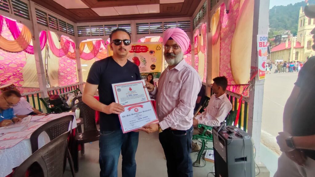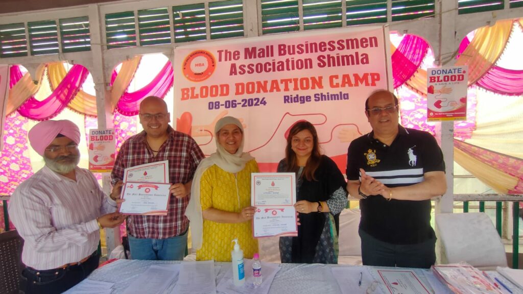 शिमला: रक्त दान महा दान, इस बात को सत्यापित करते हुए जून 8 को शिमला के रिज मैदान पर The Mall Businessmen Association, Shimla द्वारा एक रक्तदान शिविर का आयोजन किया गया। इस आयोजन में 18 वर्ष पूरे कर चुके बहुत युवाओं ने बढ़ चढ़कर हिस्सा लिया।