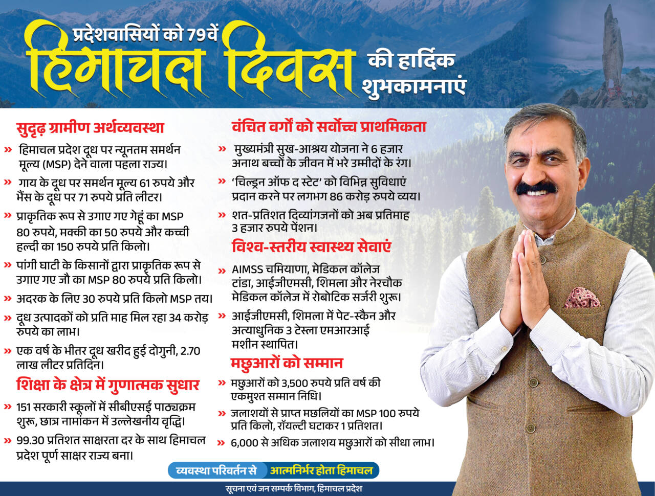 Jai Ram Thakur said that Mohit Chauhan also took over the responsibility of feeding and providing medical care of dozens of destitute dogs trapped in the forest. He said that during the second wave of Covid-19, even when the cases had increased in Delhi, Mohit Chauhan collected essential medical items like oxygen concentrators and cylinders and had sent them to the needy. He said that being a responsible and capable citizen, Mohit Chauhan left no stone unturned in fulfilling his duty during pandemic. He said that Mohit Chauhan also provided ration kits to the artists, whose income were badly affected due to the pandemic. Chief Minister said that the crisis of Covid-19 pandemic was not over yet, so everyone needs to be alert and strictly follow the guidelines issued by the government. He said that Himachal Pradesh has secured first place in the country in inoculating both the doses of Covid-19 vaccination. Along with this, we were also ahead in the vaccination of adolescents and booster dose to eligible persons, he added.