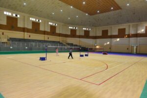 An Indoor Multipurpose Sports Complex is under construction at Nadaun, covering 9,735 square metres at an estimated cost of Rs. 112.49 crore. The facility will include a shooting range, swimming pool, gymnasium, multipurpose hall for wrestling, boxing and kabaddi, yoga hall, table tennis facilities, four badminton courts, volleyball and tennis courts, along with cafeteria, waiting lounge, and office spaces.