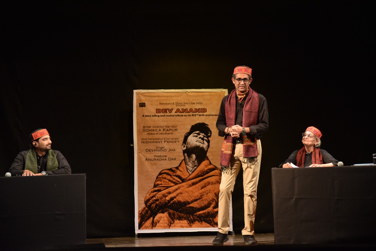 ऐतिहासिक गेयटी थिएटर में शुक्रवार शाम सदाबहार अभिनेता देव आनंद की 102वीं जयंती मनाई गई, जहां थ्री आर्ट्स क्लब और कात्यायनी की संयुक्त प्रस्तुति ने दर्शकों को हिंदी सिनेमा के सुनहरे दौर की याद दिलाई। लेखक-निर्देशक-अभिनेत्री उनकी भांजी सोहेला कपूर की नाटकीय कहानी और अभिनेता निधिकान्त पाण्डेय के अभिनय ने देव आनंद के जीवन के अनमोल पहलुओं को जीवंत किया।