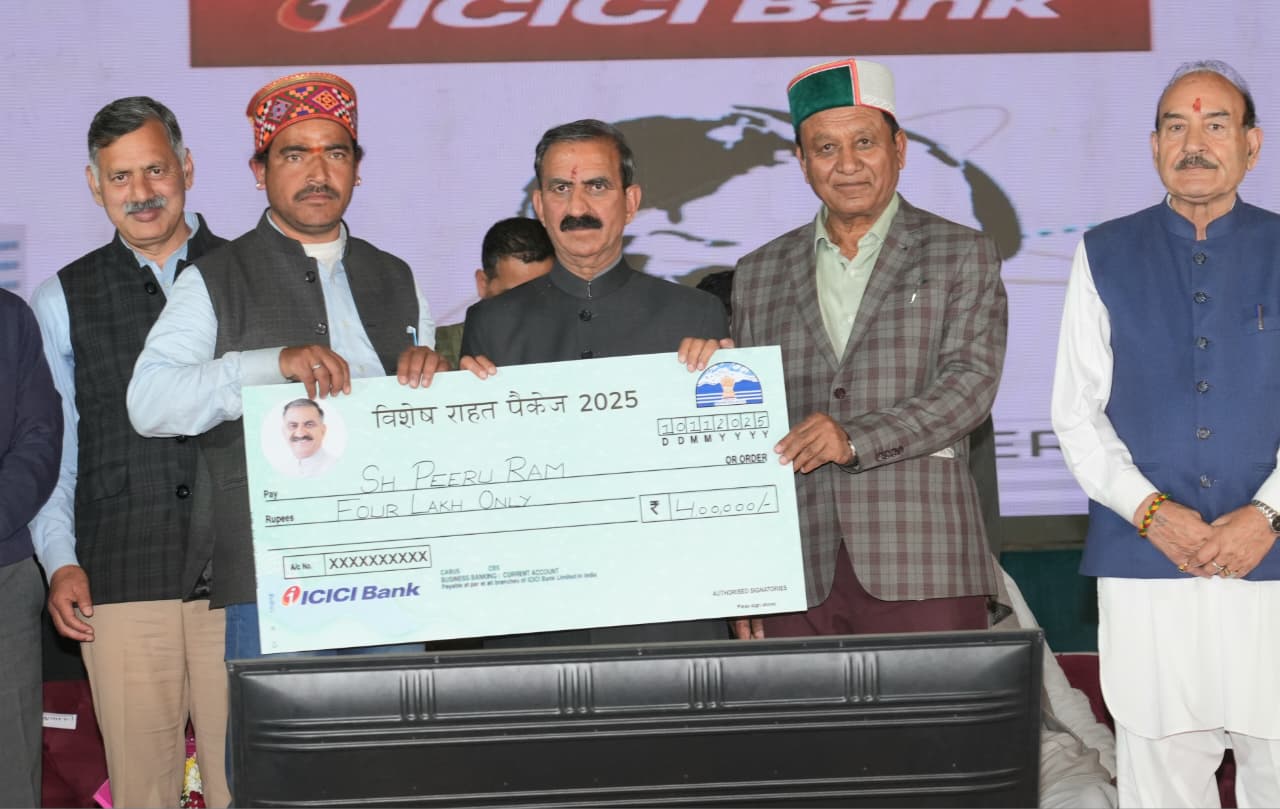 During the event, the Chief Minister extended special support to Nikita, a young girl who lost both her parents in the floods at Panglyur (Seraj Assembly Constituency). He handed over a cheque of ₹7.95 lakh to her and announced additional financial assistance of ₹21 lakh. CM Sukhu said that the government stands firmly with children like Nikita and will ensure they receive all possible support and care.