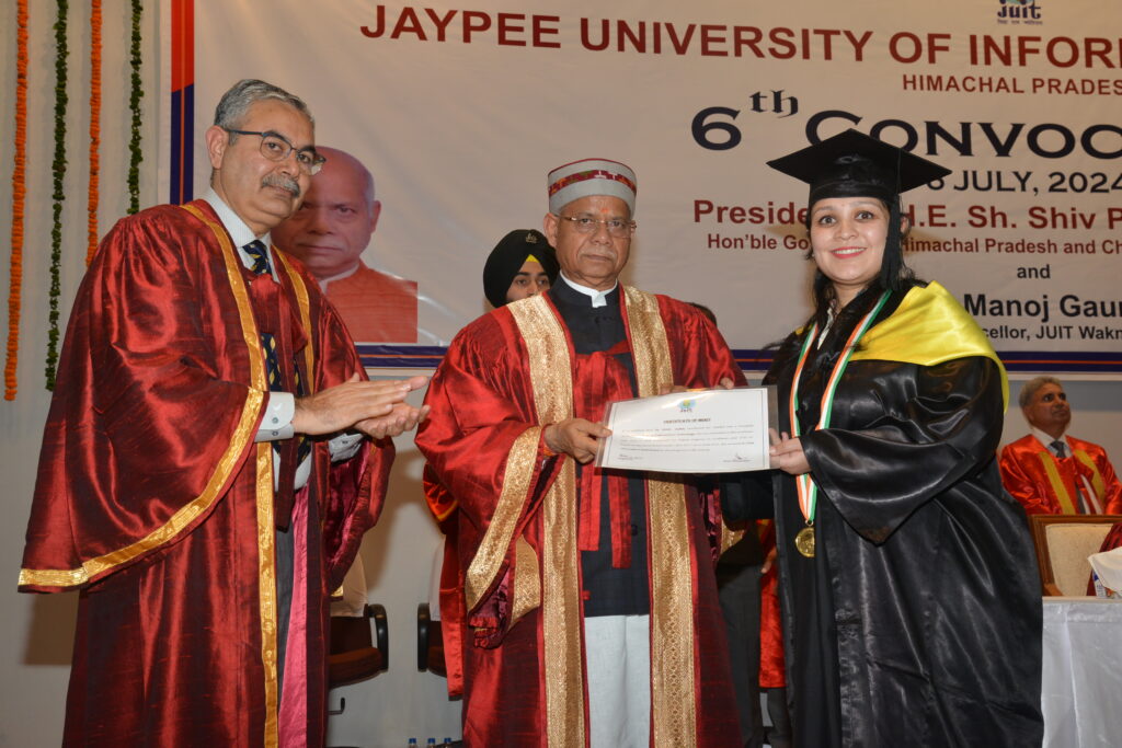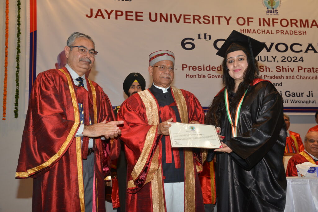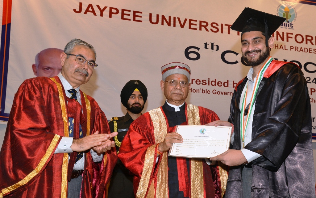 Later, Vice-Chancellor Dr. R.K. Sharma conferred 3125 degrees to the students in the presence of the Governor. C.P. Verma, Secretary to Governor, Manmohan Sharma, Deputy Commissioner, Solan, Superintendent of Police Gaurav Singh, members of the Governing and Academic Council, guests, parents, faculty members and alumni of JUIT, and other prominent people were also present on the occasion.