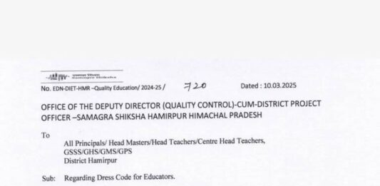 A Departmental Notice has been issued to all schools in the Hamirpur district—primary, middle, high, and secondary—requiring teachers to adopt a dress code. While there is no opposition to the dress code, it is expected that the same code should also be applied to all employees and officers within the education department. Though it is … Continue reading Himachal Pradesh: Dress Code for Teachers in Hamirpur District Schools Encouraged