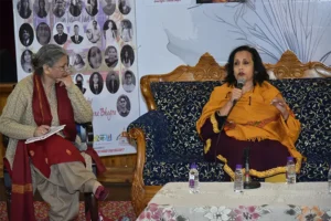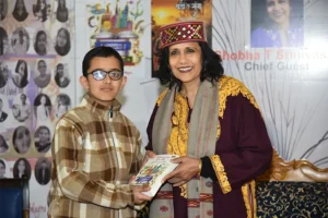 Shobha’s books, Look Before You Leap and It’s Time to Rhyme, were also discussed during the event. The moderators were Prof Meenakshi Faith Paul, Adhiraj Singh Bisht, and young discussants namely, Sreeja Chatterjee, Pritha Doegar, Midori Das and Aahr Singh. These works exemplify her mastery of language and her ability to engage readers of all ages. In her address, she emphasized the transformative power of literature in shaping perspectives and fostering creativity. She highlighted the importance of extensive reading for budding writers, asserting that the foundation of good writing begins with reading widely. She also stressed the need to read one’s work aloud, explaining how rhythm and flow enhance the appeal of language, while disjointed words or sentences require refinement. Her guidance offered invaluable insights into the art of writing, inspiring literary enthusiasts of all ages. She shared excerpts from her acclaimed works such as Prince with a Paintbrush and Good Innings, leaving a lasting impression on all attendees.