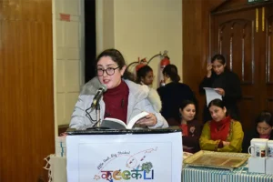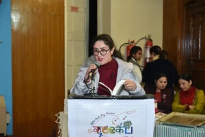 - Sneha Harnot, a 2nd-year BA student at RKMV College, Shimla, read from her powerful story Women are Made, Not Born!, delving into psychological and realistic themes.