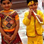 On the other hand little Krishnas were looking equally cute and smart as they were mostly in a pitambari dhoti and kurta with a flute in one hand and a crown or a head band with morpankh adorning it. It was a delight for the the eyes to see these sweet Radhas and Krishnas.