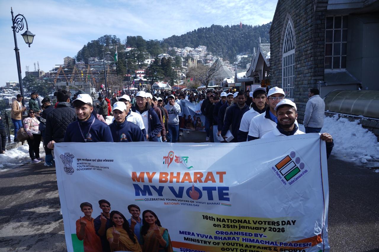 युवा कार्यक्रम एवं खेल मंत्रालय, भारत सरकार के तत्वावधान में माय भारत, शिमला द्वारा राष्ट्रीय मतदाता दिवस–2026 के अवसर पर 25 जनवरी 2026 को एक भव्य युवा मतदाता जागरूकता पदयात्रा का आयोजन किया गया। इस आयोजन का मुख्य उद्देश्य युवाओं और नागरिकों को मताधिकार के महत्व के प्रति जागरूक करना, लोकतांत्रिक मूल्यों को सुदृढ़ करना तथा युवाओं को सक्रिय लोकतांत्रिक सहभागिता के लिए प्रेरित करना रहा।